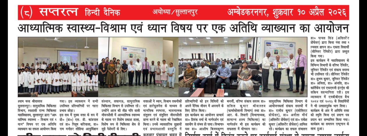 आज दिनांक 01 अप्रैल 2026 को स्वशासी राज्य चिकित्सा महाविद्यालय सुल्तानपुर में सतत चिकित्सा शिक्षा (सीएमई) का सफल आयोजन किया गया।
