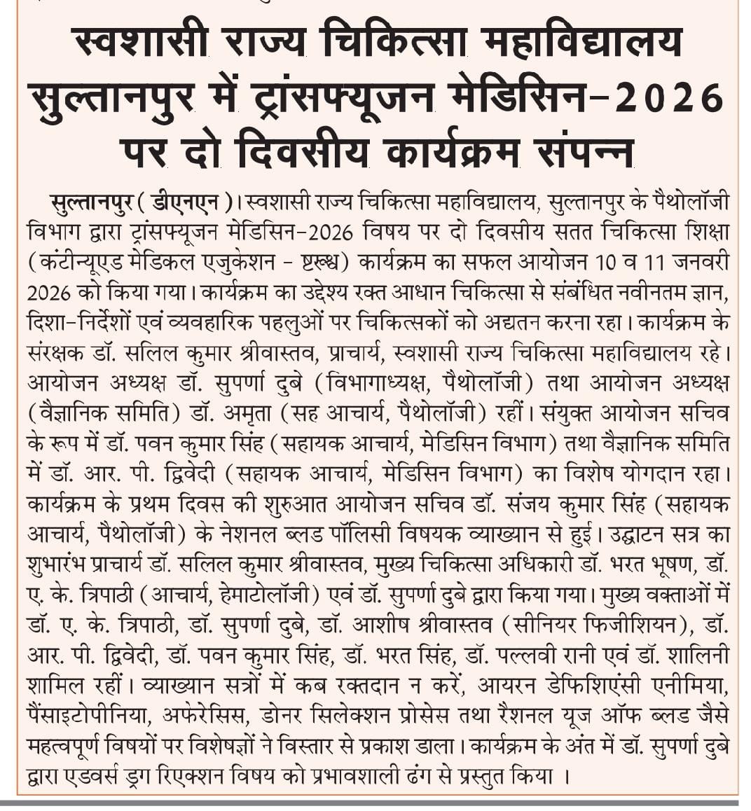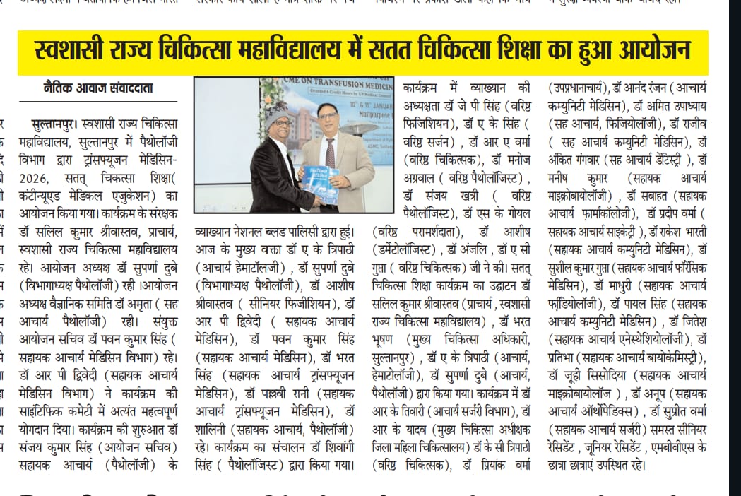 The Prevention of Blindness Week was inaugurated today at Autonomous State Medical College, Sultanpur, under the joint efforts of the Departments of Pharmacology, Ophthalmology, Anatomy, and Community Medicine. The event aims to promote awareness about avoidable blindness, the importance of early detection, and the role of rational prescribing in preserving vision.